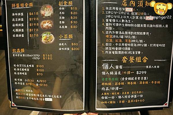 鍋濤的菜單蠻大一本的,不過有蠻多頁是在認真介紹鍋底,細細閱讀其實蠻有趣的XD