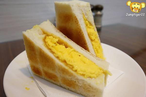 和香港三文治有點不同的是滑蛋夾在吐司中,而澳洲牛奶公司的則是鋪在吐司上頭