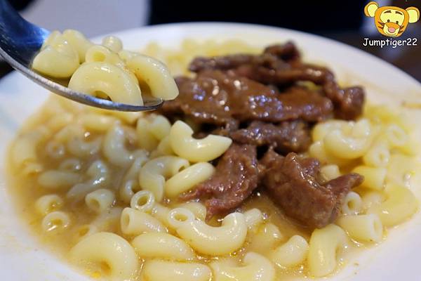 而牛肉片非常滑嫩,加上沙爹牛的口味鹹香好食,稍微攪拌讓沙爹牛帶的沙爹醬汁混入讓通粉更有味道