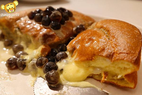 蓬鬆的鬆餅包覆著馬斯卡彭起司和麻糬,麻糬和珍珠內外夾攻讓鬆餅多了Q彈的口感
