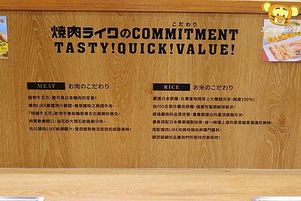 燒肉LIKE店裡主打的三個理念「TASTY!」「QUICK!」「VALUE!」