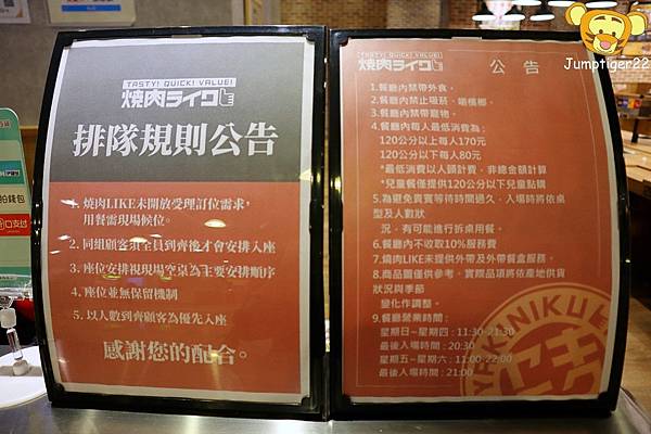 燒肉LIKE還有特別列出排隊規則公告,想必熱門時段應該也是一位難求