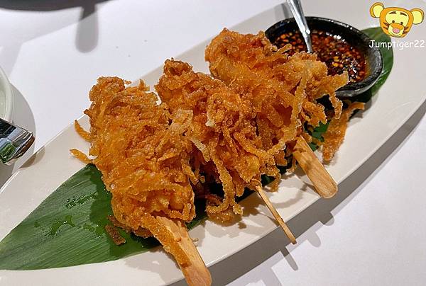以百分之百的鮮蝦泥製作,金黃酥脆的外層裡頭蝦泥真的超紮實且Q彈,而且沾上專屬醬料多了點酸辣感也很不錯!