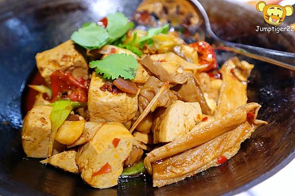 豆腐口感紮實並吸附滿滿湯汁,整道調味的辣度直接給滿五星辣度,只能說燈籠椒和大紅辣椒搭再一起真的是辣到噴火卻欲罷不能