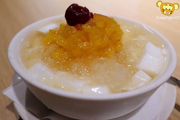 滑嫩的杏仁豆腐搭配甜蜜的蜜鳳梨,甜甜的也好吃!