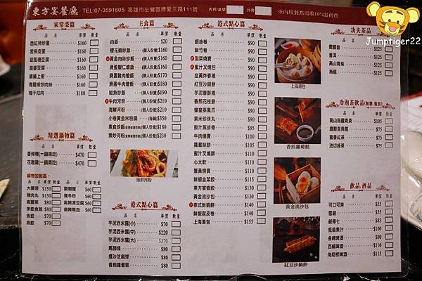 東方宴的菜單,從開胃小品、海鮮熱炒、家常菜色還有港式點心都有提供