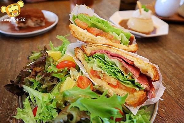 美森咖啡提供的鹹食算是很簡單卻不馬虎,一旁附上紅酒醋醬生菜沙拉,滿滿一盤!