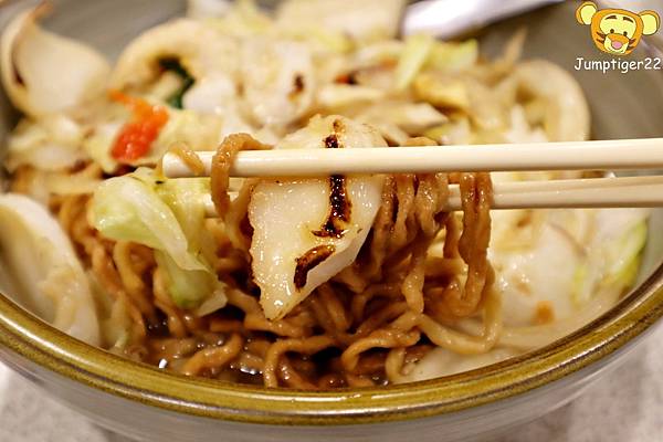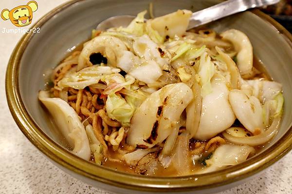 吸附鹹香醬汁的粗意麵,配上彈牙的花枝和清脆的高麗菜,重點是帶點焦香的洋蔥簡直是靈魂,超好吃!