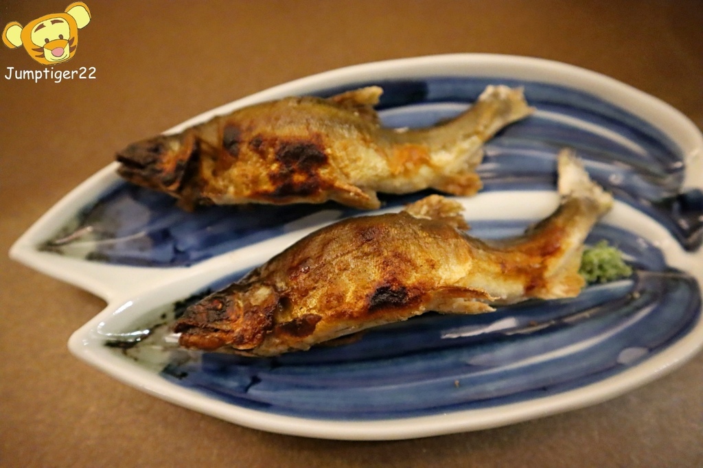 Ukai的鹽烤香魚是選自宜蘭的小香魚,以日式鹽燒的手法將香魚烤至酥脆迷人