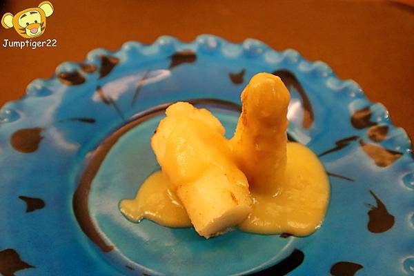 但我慢慢細細的品嚐香魚的柔嫩,搭配一點來自日本的(ㄌㄧㄠˇ)鹽,(一旁綠色的細鹽,我不太確定怎麼寫),讓香魚增添一點辛香料的味道也很不錯。