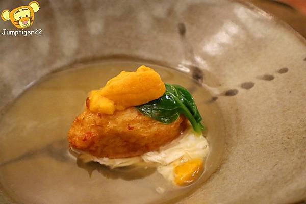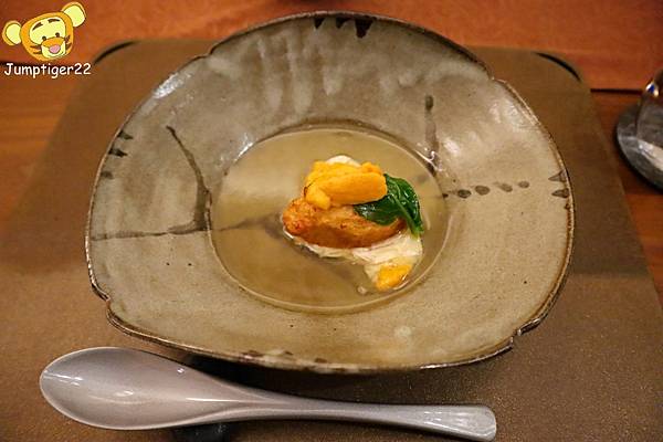 上頭的海膽也是無比新鮮,搭配以螃蟹熬制勾芡的濃稠高湯,更是鮮甜味美!