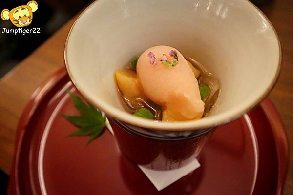胭脂蝦非常肥美,肉質彈牙新鮮,海鮮蝦味配上柴魚高湯清凍,淡淡的美味很有日式感。