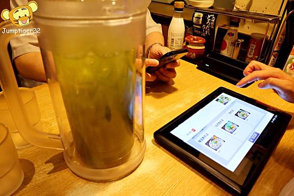 採用平板點餐,旁邊清涼的綠茶真不錯
