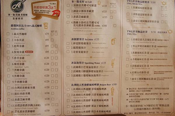 這裡的menu其實很簡單,就是一張紙雙面,一面早午餐、甜點、土司;另一面是飲品。